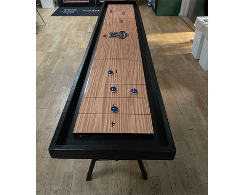 Lej Mobilt shuffleboard / Shufflebord. Shuffleboard leveres køreklar inkl. bord, ben & 2 x 4 pucks, som kan glide frit på shuffleboardet (uden sand).